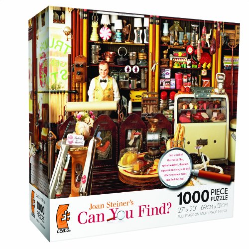 Joan Steiner Can You Find - Trumps General Store 1000 Piece Puzzle 1000 pieces Puzzle assembled is 27 x 20 High gloss image on package for reference Collect all styles in your favorite artists collection Made in the USA Read More..